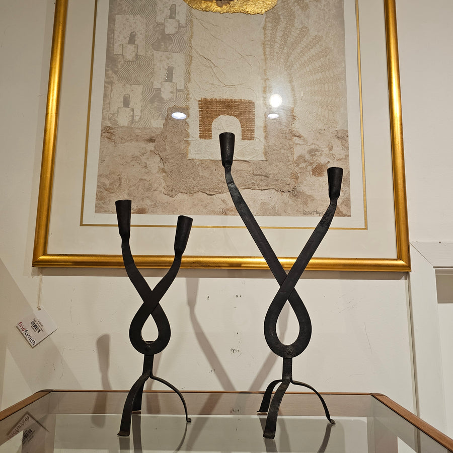 Pair of Vtg Travertine & Brass Hurricane Candle Holders