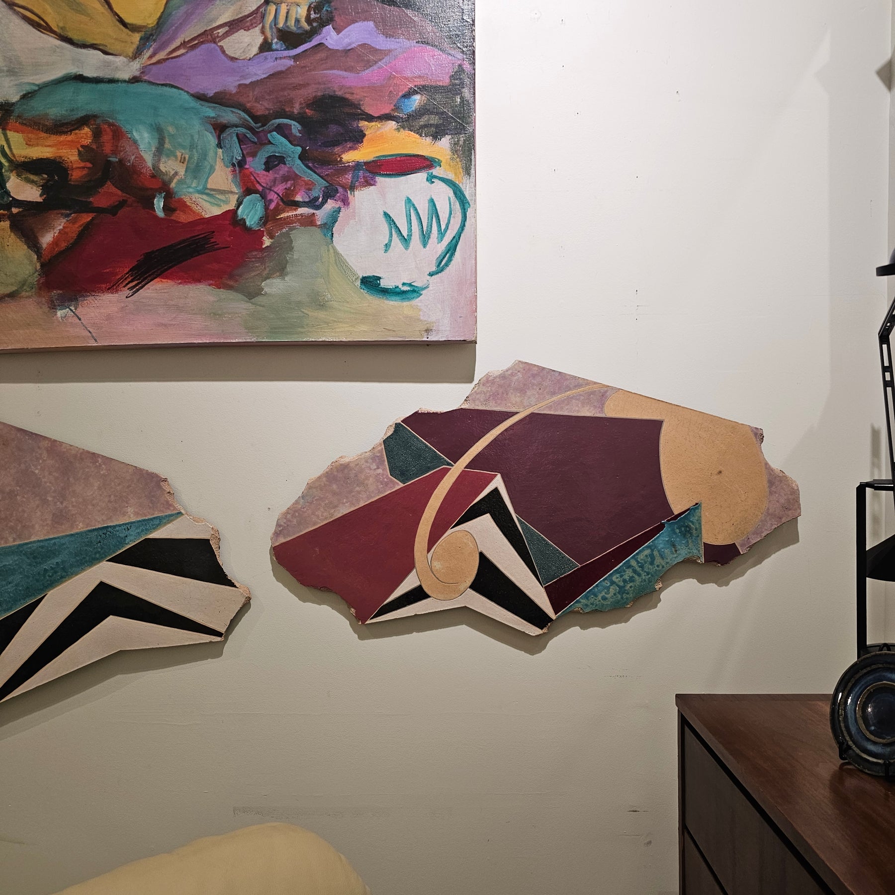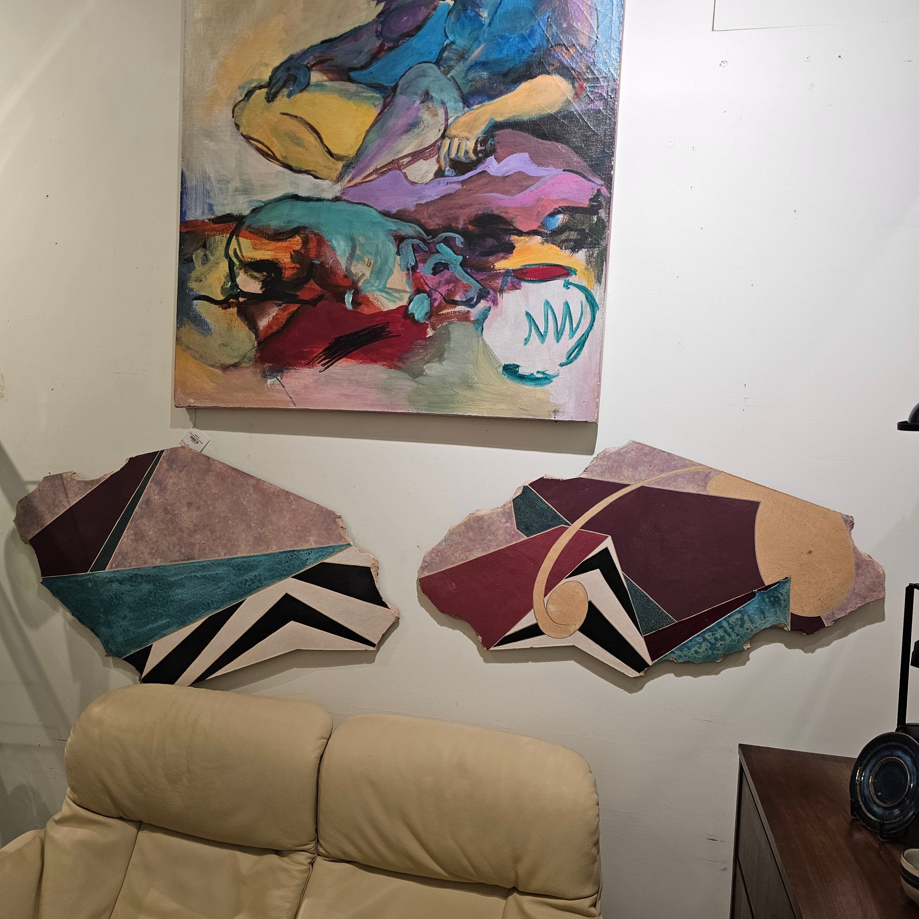The smaller piece measures 22 inches high by 42 inches wide and 2 inches deep, while the larger one stands 26 inches tall, 44 inches wide, and 2 inches deep