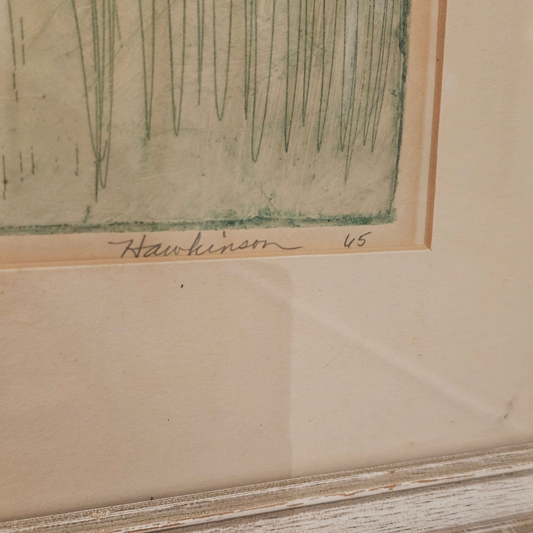 Signed Green Etching of Boy, 1965. Signed and dated, Hawkinson '65