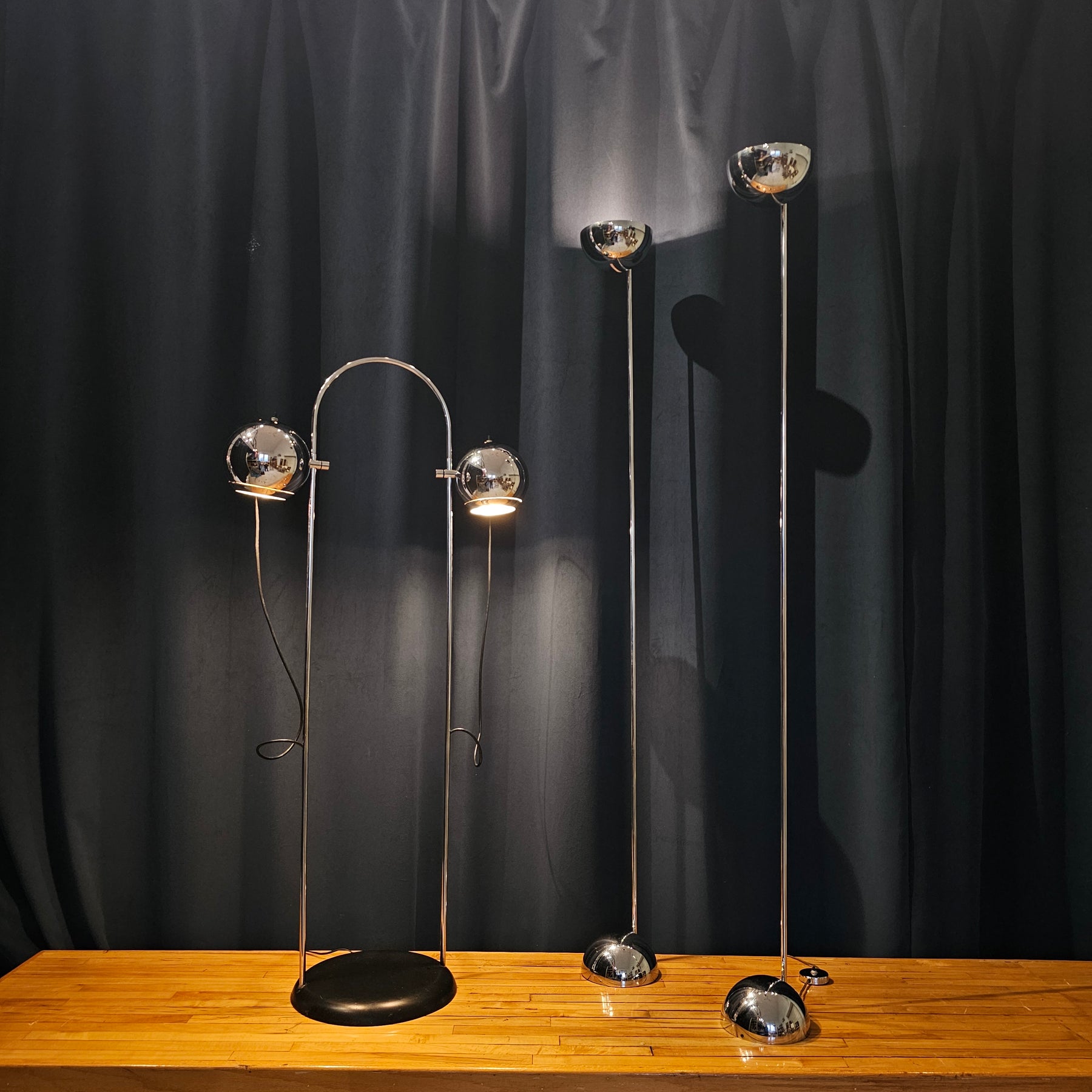 Stunning 1970's Chrome George Kovacs Arc Floor Lamp. Each shade rotates and is adjustable around the full arc. Great overall vintage condition.