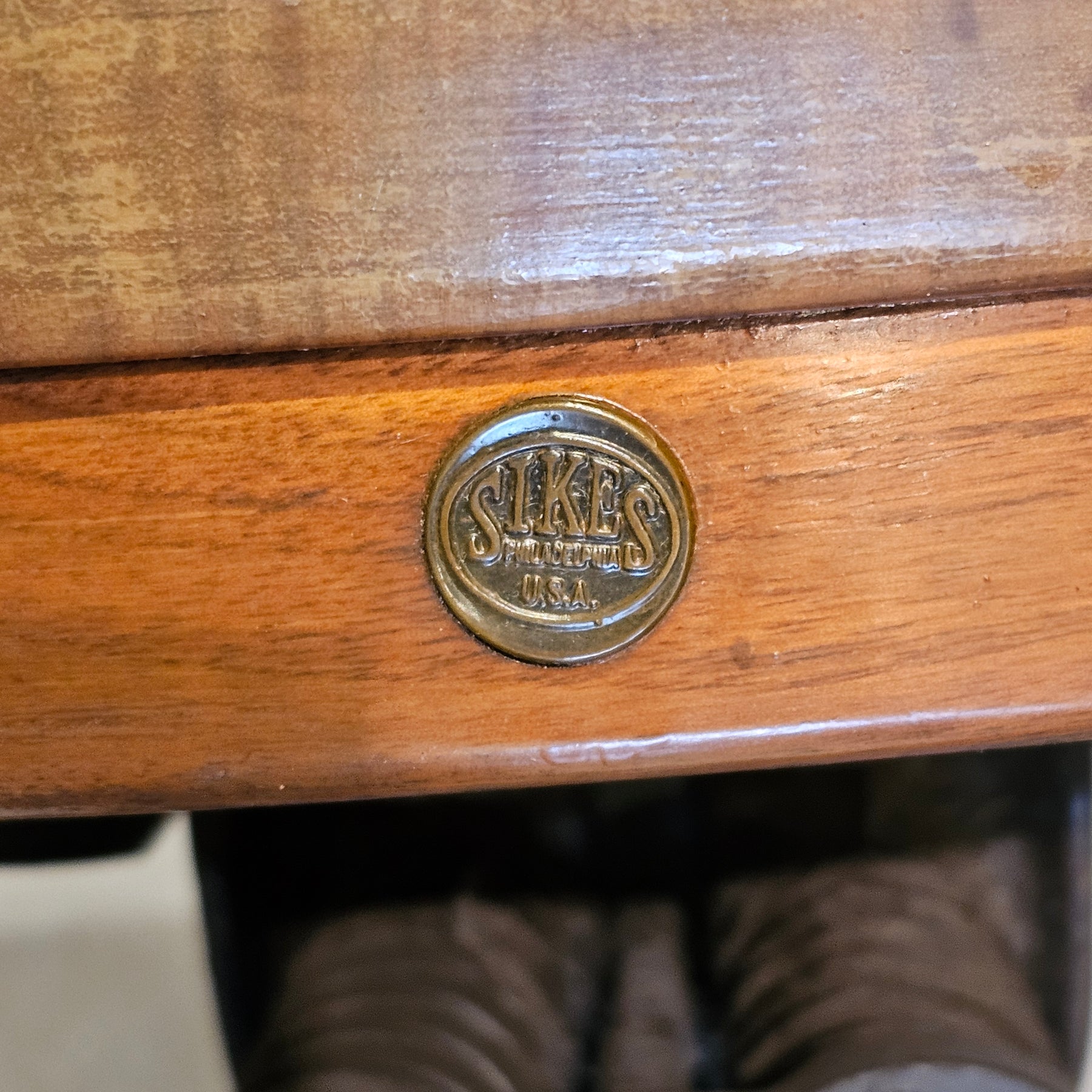 Adjustable Sikes Swivel Oak Desk Chair.   Originally from the Minneapolis Courthouse.  Patina and age throughout, with newer casters.
