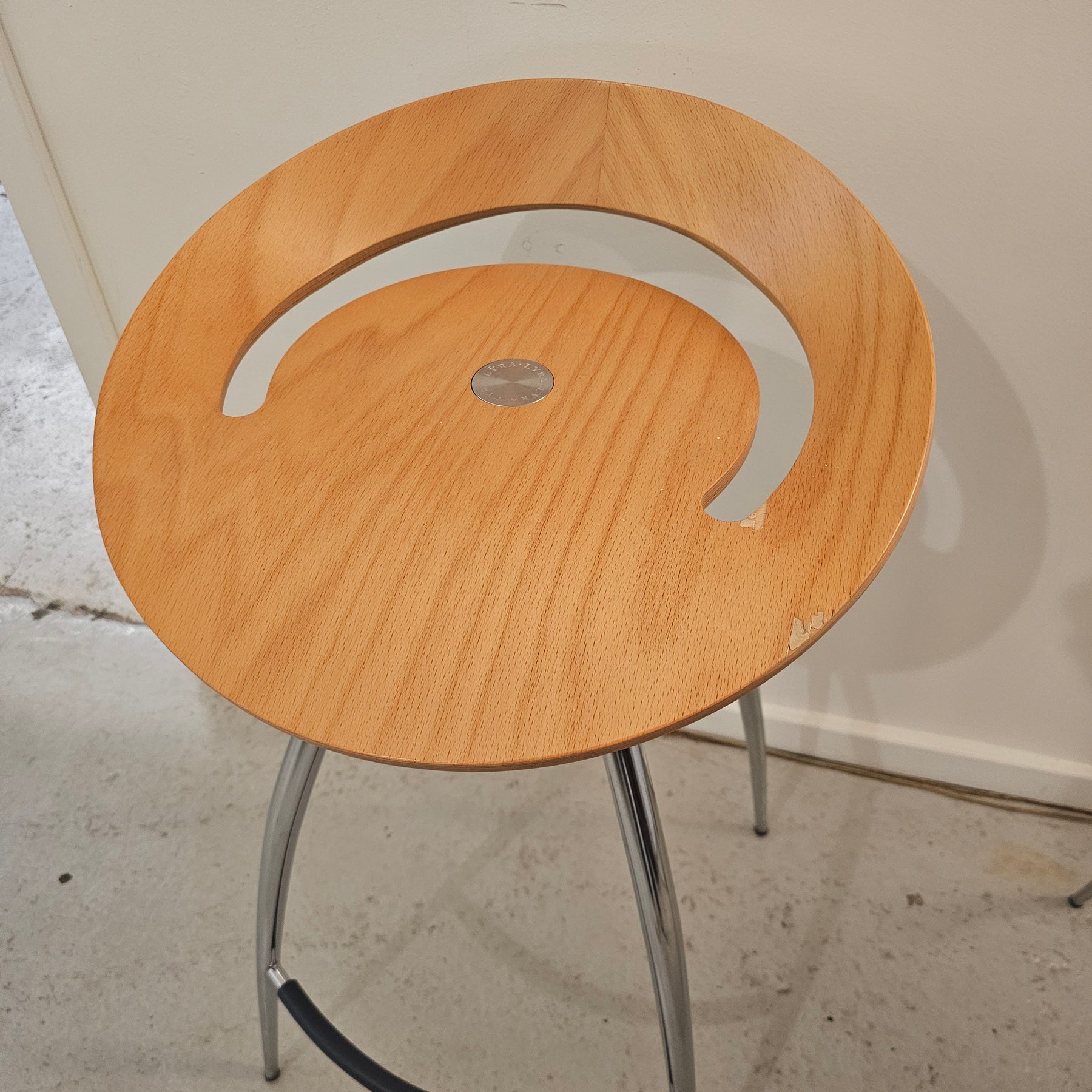 Lyra Counter Stool.   Two available, one in what we would consider good condition, and the other in fair condition with chips to the veneer.